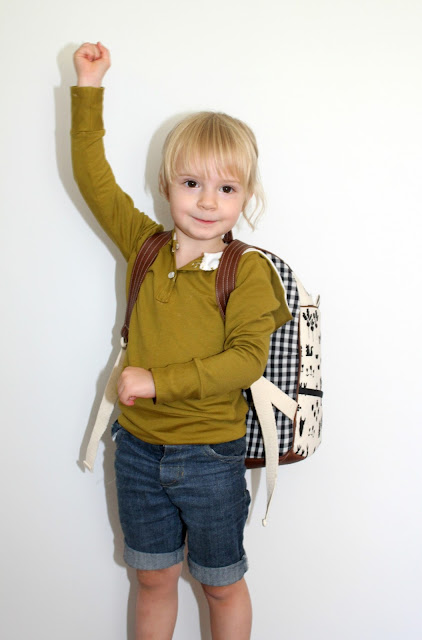 margot started 'school' this year. it's only a half day, four days a week, but to her, it's the greatest thing ever. classmates, coloring pages, new songs, snack time and a big kid playground. all the things she loves. and since she needed a full sized backpack to bring home all of those coloring pages, i thought it was a good chance to make my second toddler backpack.